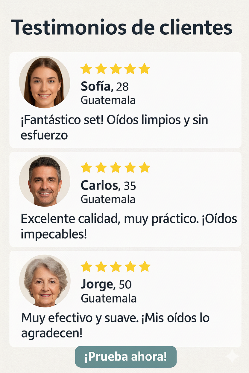 El Kit Limpiador de Oídos es la forma más segura, higiénica y efectiva de mantener tus oídos limpios desde casa, ¡sin necesidad de gastar en especialistas! 🏡👂
